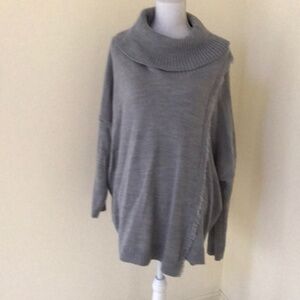 Ivanka Trump Size Large heather grey cowl neck Dolman sweater with Fringes. Gently used.