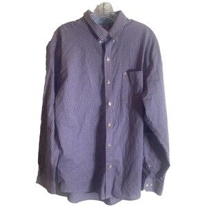 Izod Men's Button-Down Long Sleeve Shirt - Purple Gingham - Size L