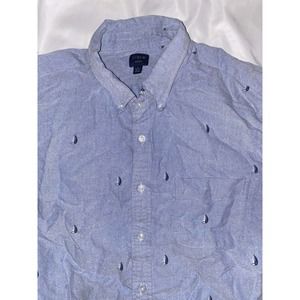 J. CREW Flex Chambray Blue SAILBOAT Print Button Down Shirt Size Large 16-16.5.