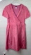 J. Crew pink silk taffeta dress with ruffled v-neck and faux wrap front. My sister bought it new and only wore it once as a bridesmaid dress years ago. Short sleeves with button detail. Lined. Hidden double snap closure with tie. Bow tie at waist. Concealed on seam pockets. Size 10. Small stain on back, see photo. Otherwise, in excellent condition.