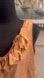 Stunning deep gold sleeveless blouse made of natural silk, keeps you cool all summer. Beautiful details, hidden button placket under the ruffle, snaps under the straps to hide bra straps.