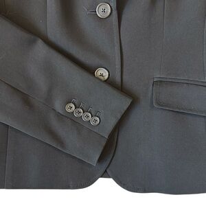 J Crew 100% Wool Suiting Jacket Blazer. Black. Fully lined. Two-Button front. Real pockets. Notched lapel. Back vent. Top stitching for interest. Lightweight and versatile.
