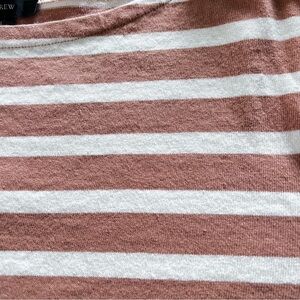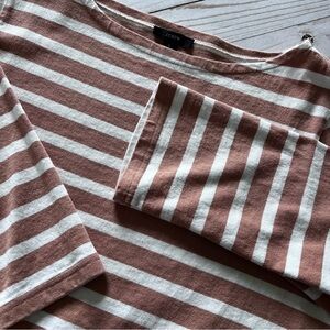 J Crew Basic Boat Neck Preppy Stripe 3/4 Cotton Tee in Tan and White size Large