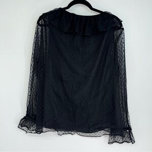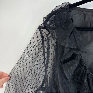 J. Crew Black Swiss Dot Witchy Dark Academia Collared Flare Sleeve Top