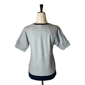 J Crew Blue And Gray Embroidered Panel Short Cuffed Sleeve Sweatshirt Top XS