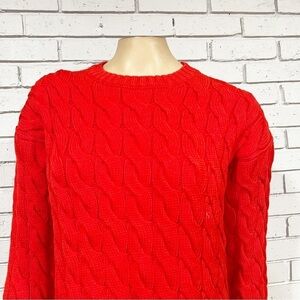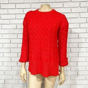 J. Crew Cotton Cable-Knit Side-Slit Crewneck Sweater