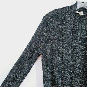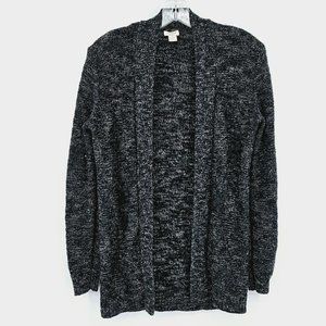 J Crew Factory Cardigan Sweater XS Open Black White Marled Long Sleeve Knit Cozy