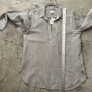J Crew Factory Striped Pop Over Linen Blend Tunic Top. Size Medium