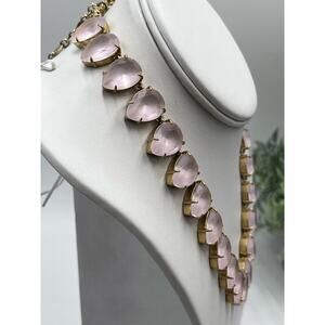 J. Crew Frosted Matte Satin Light Pink Teardrop Rhinestone Full Necklace