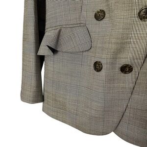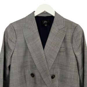 J Crew Glen Plaid Wool Ruffle Pocket Double Breasted Blazer Size 4