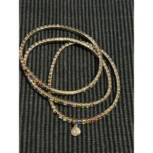 Add some sparkle to your wrist with this beautiful J.CREW Jeweled Stretch Bracelet Set of 3. The multicolor bracelets are perfect for any outfit and the stretchy material ensures a comfortable fit for any wrist size. The set includes three bracelets, each with a unique style and color, so you can mix and match to create your perfect look. Whether you're dressing up for a special occasion or just adding some flair to your everyday outfit, these bracelets are sure to impress.
