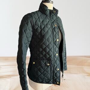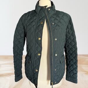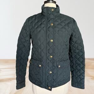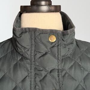 This J. Crew jacket in a Women's Size Small is a classic addition to your winter and fall wardrobe. The mid-length, quilted style with a full zip and button closure is perfect for casual occasions. The outer shell and lining are made of polyester and it features down insulation, providing warmth and comfort during the colder months.