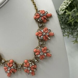 J Crew Opaque Pink and Clear Crystal Gold Tone Floral Statement Necklace