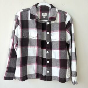J. Crew Relaxed Flannel Shirt Jacket Shacket in Buffalo Check Brown Pink. in great condition!