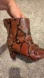 Step out in style with these chic brown snake print boots. Perfect for any occasion, these boots offer both comfort and elegance. Good/great used condition. Creasing in multiple places and a scuff/ripped area of leather on left toe area. Sold out online.