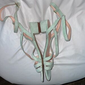 J. Crew Seafoam Green Suede Leather Strappy Heeled Sandals size 7