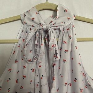 J. Crew Silk Blend Cherry Print Sleeveless HighTie Neck Halter Blouse Top