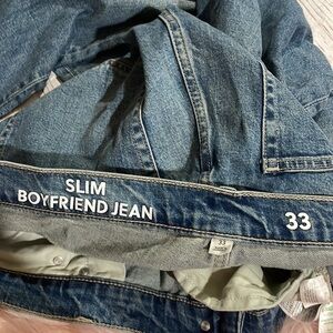 J. Crew high rise slim boyfriend distressed jean in tinted indigo Wash. These jeans are in great used condition
