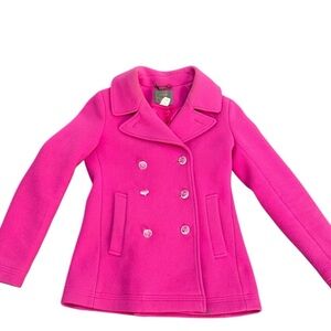 J Crew Stadium Cloth Raspberry Pink Pea Coat Size 2
