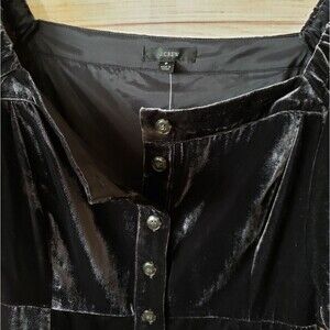 J. Crew Velvet Puff Sleeve Button Front Square Neck Dress Women's Size 8 Black