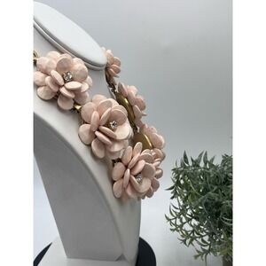 J. Crew Vintage 3 Dimensional Wood Rose Pretty in Pink Floral Collar Necklace