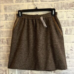 J Crew Women Skirt 0 Brown Herringbone Mini Wool Blend Pockets Stretch Old Money
