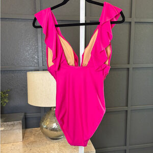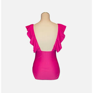 J Crew Womens 4 Pink Fuchsia One Piece V-Neck Ruffle Swimsuit Bathing Suit NWT