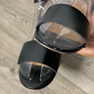 J . Crew Wooden Platform Black Leather Sandals 6