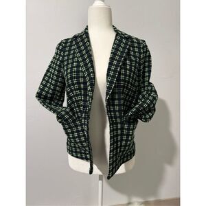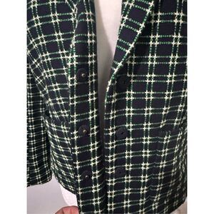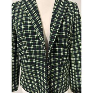 J.Crew textured embroidered green plaid blazer size 6 snap button front beautiful jacket cotton no rips or stains
