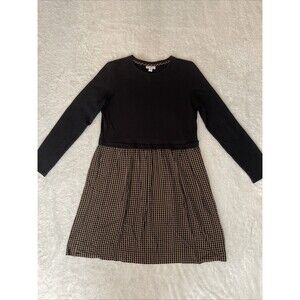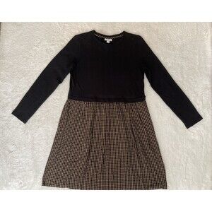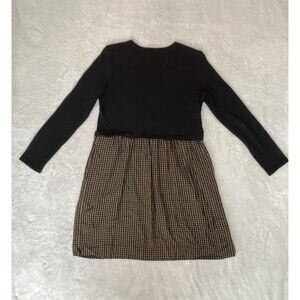 J. Jill Dress Plaid Size S Mixed Media Pocket Flowy Black Checkers Long Sleeve