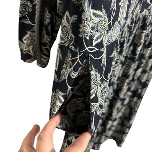 This J. Jill dress features a sophisticated black and gray paisley print, perfect for casual or work settings. The 3/4 sleeves and V-neckline add a touch of elegance to its relaxed silhouette, ensuring comfort and style throughout the day.