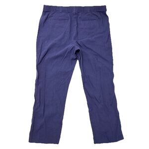 J Jill Linen Stretch Pants Pull On Straight Leg Cropped Size L Large Navy Blue