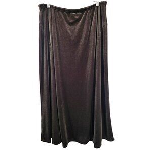Versatile brown velour skirt designed for comfort and sophistication. Crafted with a soft blend of polyester and spandex, this maxi-length piece offers fluid movement and a luxurious texture that transitions seamlessly between professional and casual settings.