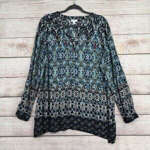 J. Jill V-Neck Floral Watercolor Tunic Blouse Women's Size Large Multicolor