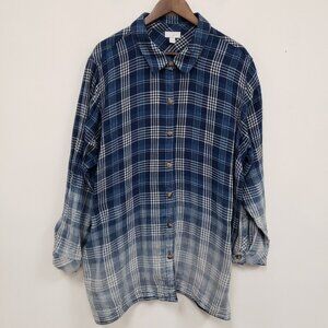 J Jill Women Button Up Ombre Plaid Top Size 3X Long Sleeve Casual Country Office