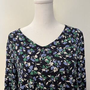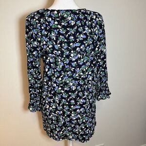 J Jill Women Top Blouse Sz S Blue Floral Multicolor Wearever Smocked Tunic Stretch Ruffled