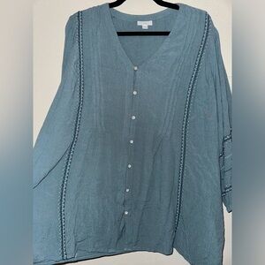 J. Jill blue button front long sleeve top bohemian boho cottagecore spring L