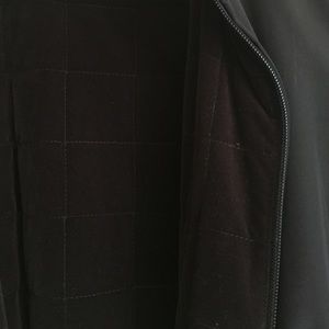 Chocolate velvety quilted fabric reverses to black microfiber. Size m.
