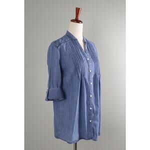 J. MCLAUGHLIN $148 Chambray Pleated Linen Blend Tab Sleeve Shirt Top Size XS
