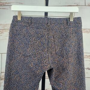 J. McLaughlin stretchy slim cut ankle pant with a blue/peach graphic print and snap/zip fly. Excellent Preowned Condition, no flaws.   Size 2