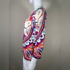 J McLaughlin Catalina Cloth Top Blouse Womens Sz M Retro Paisley Boat Neck Vacay