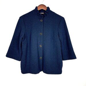 J McLaughlin Jacket Womens Medium Navy Black Button Up Texture 3/4 Sleeve Ruffle