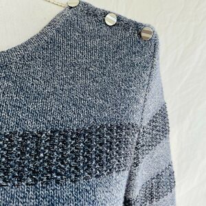 J. McLaughlin Randy Stripe Sweater Knit Scoop Neck Long Sleeve Metallic Blue S