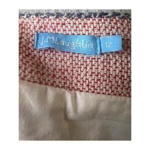 J McLaughlin Red White Stripes Textured Fabric Fringe Hem Straight Skirt Size 12