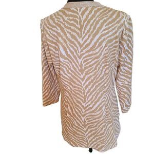 J McLaughlin Womens Beige White Print Long Sleeve Tunic Top Medium