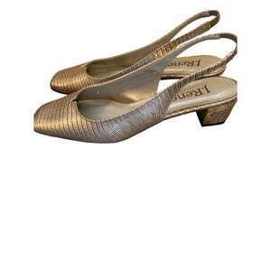 J. Renée Women's Gold Slingback Heels Elegant Woven Pattern Formal Size 8.5