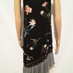 JAASE Midi Sleeveless Dress Size M 100%Cotton Adjustable Shoulder Straps Very Beatiful Design Black Color Floral Print  Amazing Pre-Owned Condition