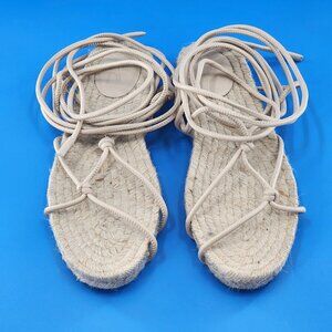 JACK ERWIN NWOB Olivia Lace-up Leather Espadrille Sandals Cream
