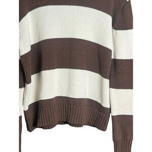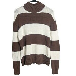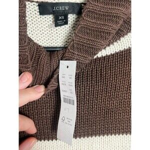 J.CREW NWT ULTRA Cream & Brown rugby stripe mockneck sweater Preppy XS