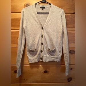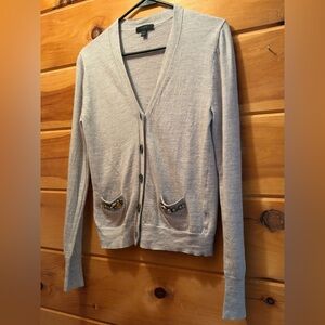 J.Crew Embellished Jewel Grey Cardigan 100% Merino Wool. Women’s size Medium.